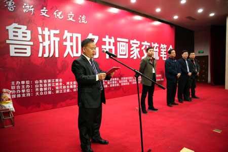 葉蘄萩秘書長在致辭中說,在長期的歷史發展中,魯浙兩省沉淀創造了各具特色的吳越文化與齊魯文化,二者相互區別又相互聯系。文化與經濟一直是地區發展的重要支柱。而書畫藝術作為兩地文化的重要表現形式之一,又承載了兩地源遠流長的歷史文化。我們希望,以書畫為媒,以筆會為契機,在魯浙兩省的共同努力下將文化交流擴大化,縱深化,多樣化。