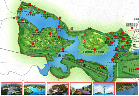 商會副會長單位投資建設的山東天湖旅游綜合開發項目位于淄博市沂源縣城西天湖周邊區域,天湖原名田莊水庫,距離縣城中心約4公里,是全省距離縣城最近的大型水庫,也是山東境內海拔最高的大型水庫。項目總規劃占地面積為22.45平方公里,規劃范圍為東至沂蒙路,西至魯村大橋,南至濟青高速南線,北至薛館路。初步預計總投資約37億元,建設期限為6—8年。整個項目分為大壩觀光休閑區(其中包括天街、天湖藝術村、天湖游樂園“沂河歡歌”)、天湖旅游度假村、天湖濕地公園、水上觀光游樂區等。