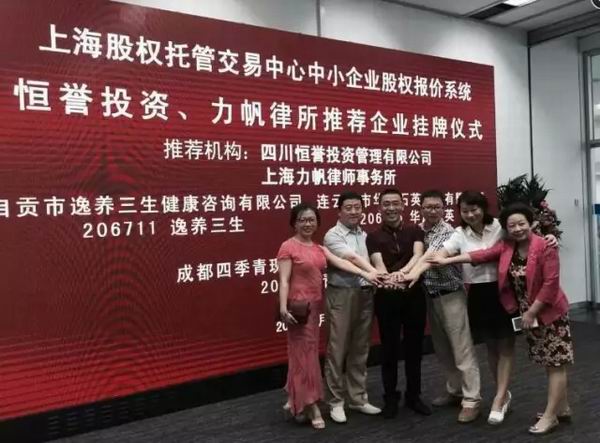 2015年7月30日上午九時(shí),山東省浙江商會(huì)副會(huì)長(zhǎng)單位、四川省浙江商會(huì)常務(wù)副會(huì)長(zhǎng)單位德泰堂控股公司參股的四川自貢市逸養(yǎng)三生健康咨詢有限公司邁出了進(jìn)入資本市場(chǎng)實(shí)質(zhì)的第一步,正式在滬掛牌上市,這是商會(huì)副會(huì)長(zhǎng)、德泰堂董事長(zhǎng)劉煊苗先生多年來(lái)研究長(zhǎng)生文化、養(yǎng)老護(hù)理、健康管理的實(shí)踐,也是我國(guó)養(yǎng)老產(chǎn)業(yè)、健康管理及咨詢產(chǎn)業(yè)正式邁上資本市場(chǎng)快車道的一個(gè)標(biāo)志。
