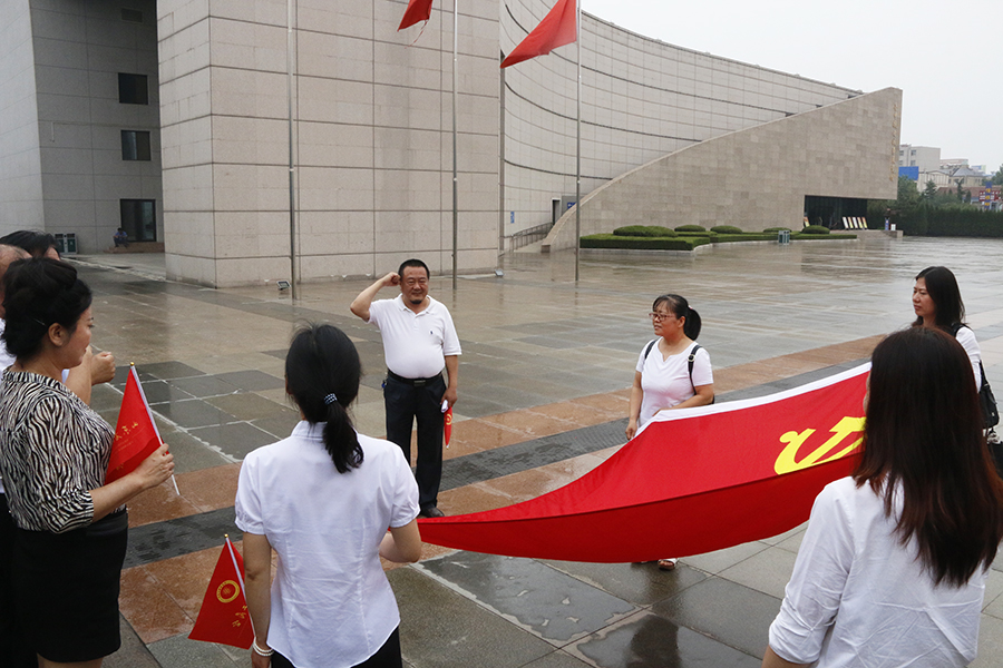 為慶祝中國共產黨成立98周年暨中華人民共和國成立70周年,緊跟總書記步伐,為深入扎實搞好“不忘初心、牢記使命”主題教育活動,7月17日,山東省浙江商會黨支部組織黨員和積極分子共約40人赴萊蕪戰役紀念館開展“不忘初心牢記使命”主題教育黨員活動。受商會黨支部書記胡小軍委托,黨支部副書記徐秀梅帶隊赴萊蕪,并對主題教育黨員活動提出要求。黨支部委員王哨華講話并帶領大家重溫入黨宣誓,黨支部組織委員馮生標對如何使本次教育學習得到落實提出具體要求。商會常務副會長蔣加良帶領大家同唱《沒有共產黨就沒有新中國》。商會副會長徐漢成,會員黨員徐庚君、吳建陽、樓天聯,山東省浙江商會副會長、濟寧市浙江商會常務副會長兼黨支部書記王德定,濟寧市浙江商會副會長孔薇薇,聊城市政府原副秘書長、聊城市浙江商會顧問呂昭嶺,聊城市浙江商會副會長張潔,泰安市浙江商會副會長林辛,泰安市浙江商會秘書長陶光明,山東省浙江商會副秘書長劉謐,常務理事詹海軍,浙商保險、廣慶集團的黨員代表及省市浙江商會秘書處人員參加活動。