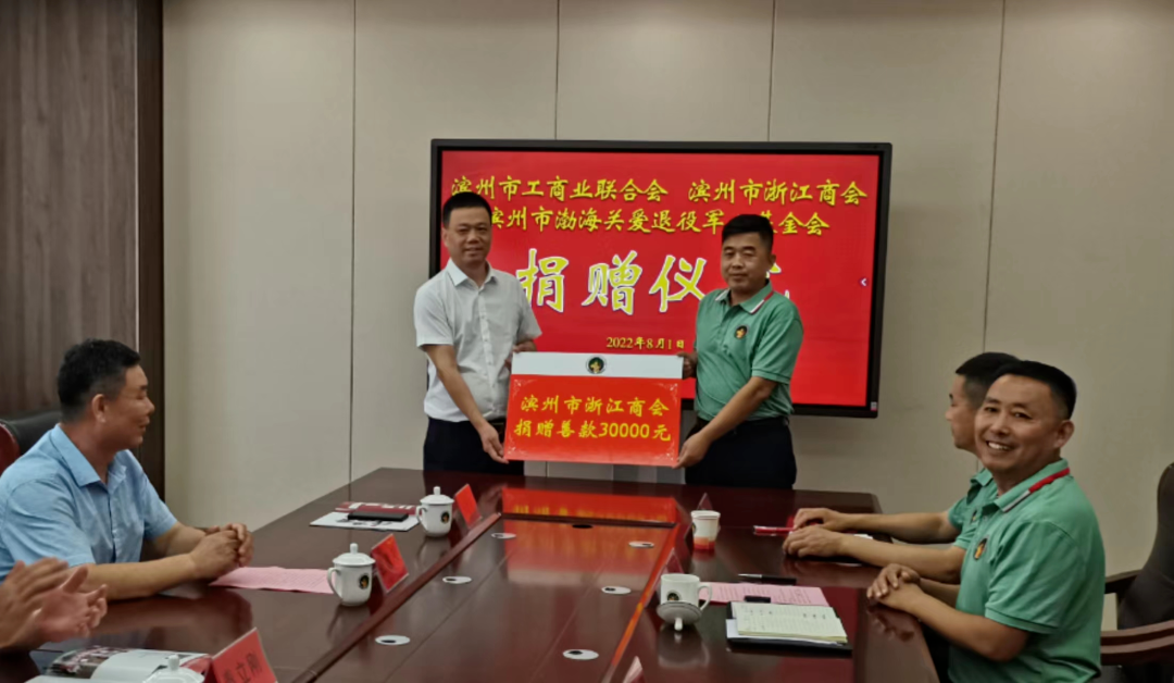 8月1日下午,為落實(shí)習(xí)近平總書記關(guān)于做好退役軍人工作的重要指示,營(yíng)造關(guān)愛退役軍人的濃厚氛圍,濱州市工商聯(lián)、濱州市浙江商會(huì)聯(lián)合濱州市渤海關(guān)愛退役軍人基金會(huì)舉行捐贈(zèng)儀式。市工商聯(lián)四級(jí)調(diào)研員秦立剛、濱州市退役軍人事務(wù)局黨組成員、副局長(zhǎng)張建軍、退役軍人服務(wù)中心副主任尚麗娜、濱州市浙江商會(huì)執(zhí)行會(huì)長(zhǎng)李志順、副會(huì)長(zhǎng)林峰及基金會(huì)領(lǐng)導(dǎo)參加儀式。