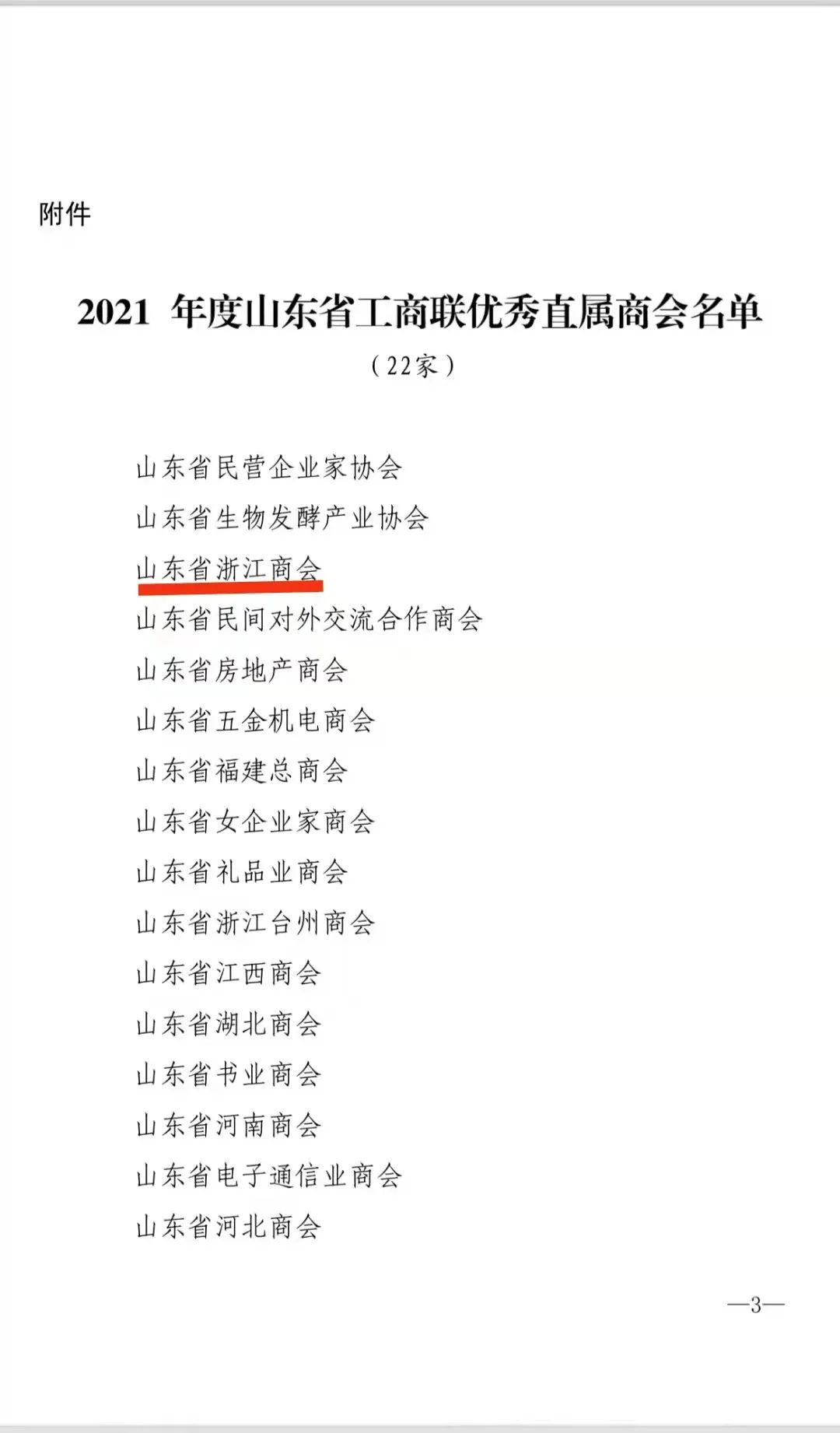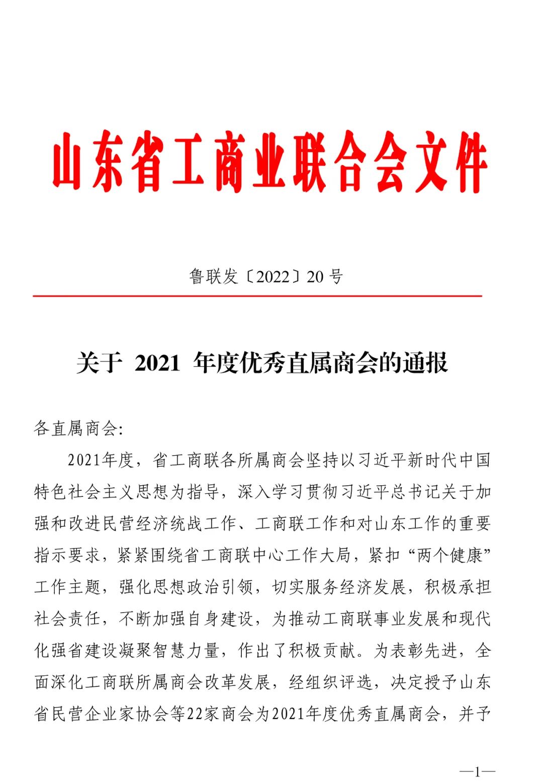 近日,山東省工商聯發布了《關于2021年度優秀直屬商會的通報》魯聯發[2022]20號:為表彰先進,全面深化工商聯所屬商會改革發展,經組織評選,決定授予山東省浙江商會等22家商會為“2021年度優秀直屬商會”,并予以通報表揚。