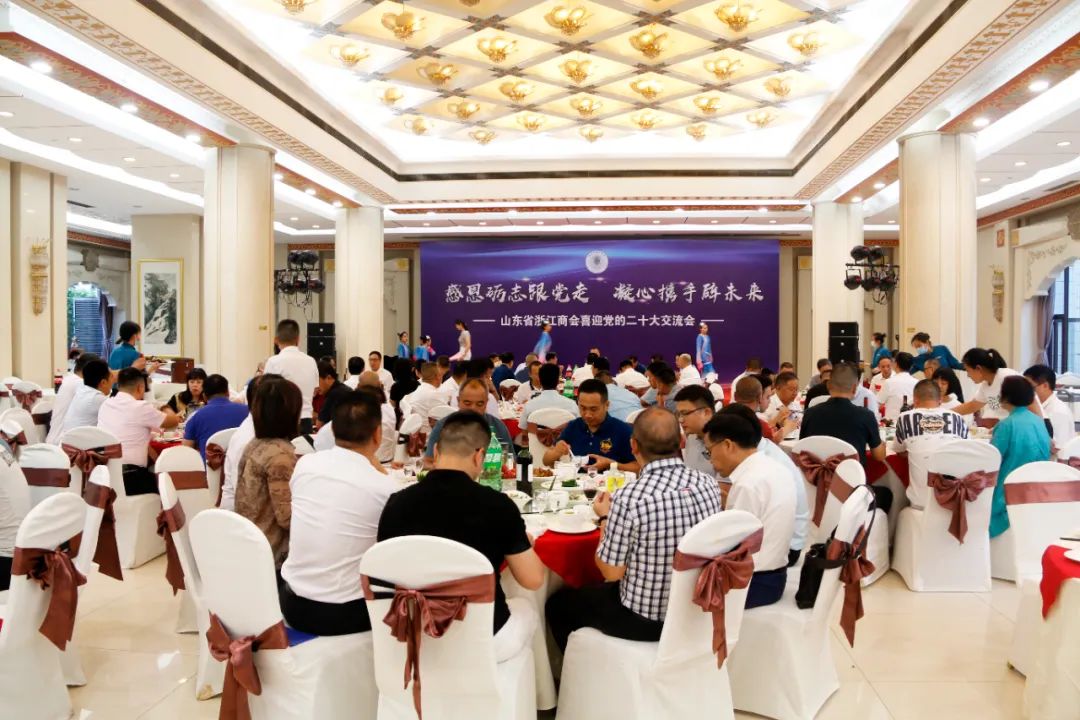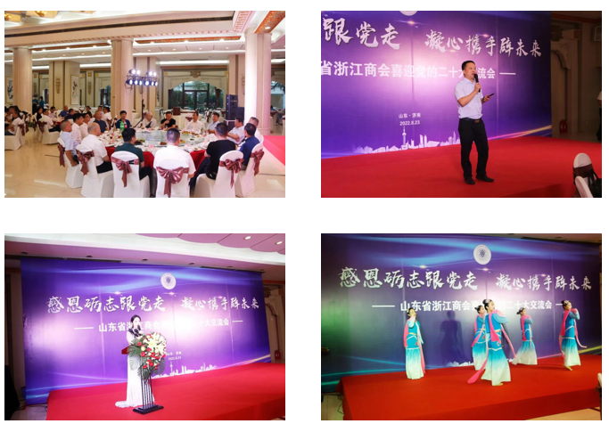 交流會第二階段,山東省浙江商會喜迎黨的二十大交流活動文藝演出,表達對黨的二十大召開的喜悅之情。山東省浙江商會副會長、山東省浙江青聯常務副主席毛繼輝為大家獻上一首自己改編的《浙江人》,表達了浙商自強不息、攜手發展,為經濟社會發展貢獻積極力量,贏得熱烈掌聲。