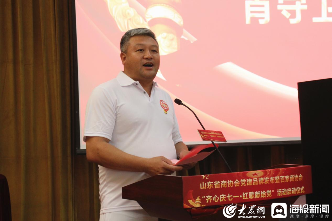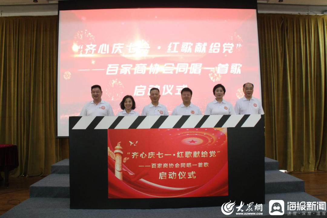 授旗儀式后,為了迎接即將到來的“七一”建黨節,百家商協會“齊心慶七一·紅歌獻給黨”活動同時啟動,旨在引導商協會黨員干部進一步堅定信心與決心。聯席會各發起單位:山東省湖北商會黨支部書記、會長王傳高、山東省家電行業協會聯合黨支部書記、山東省智能家居協會會長曹???、山東省孕嬰童產業服務協會會長劉長燕、山東省女企業家商會黨支部書記賈莉萍、山東省浙江商會黨支部書記胡小軍、山東省民營企業家協會秘書長李吉祥共同上臺宣布活動啟動。